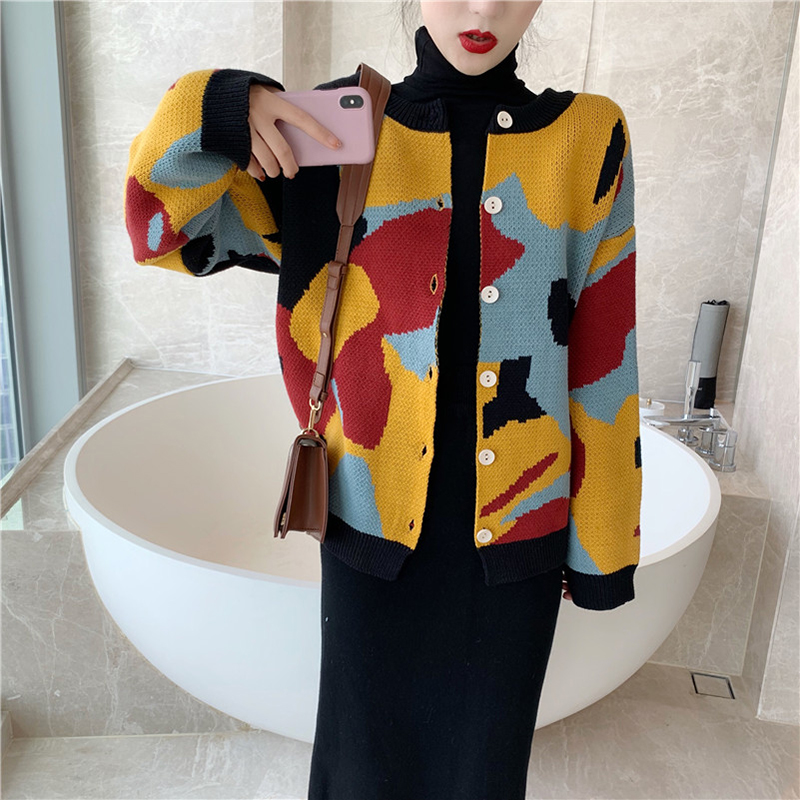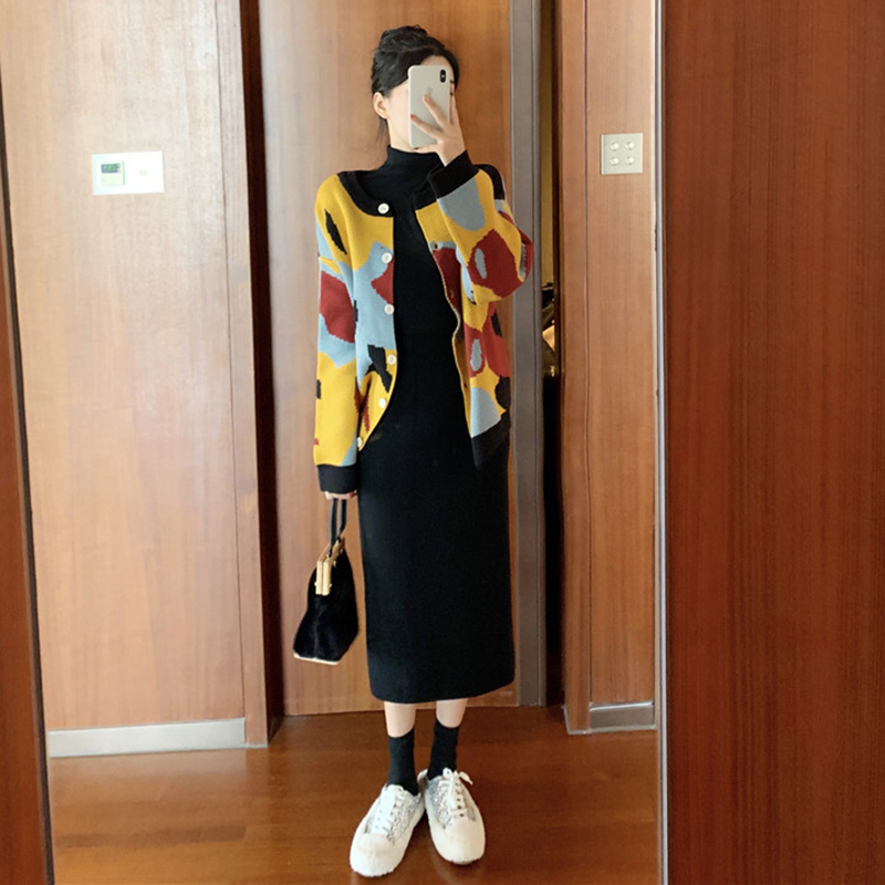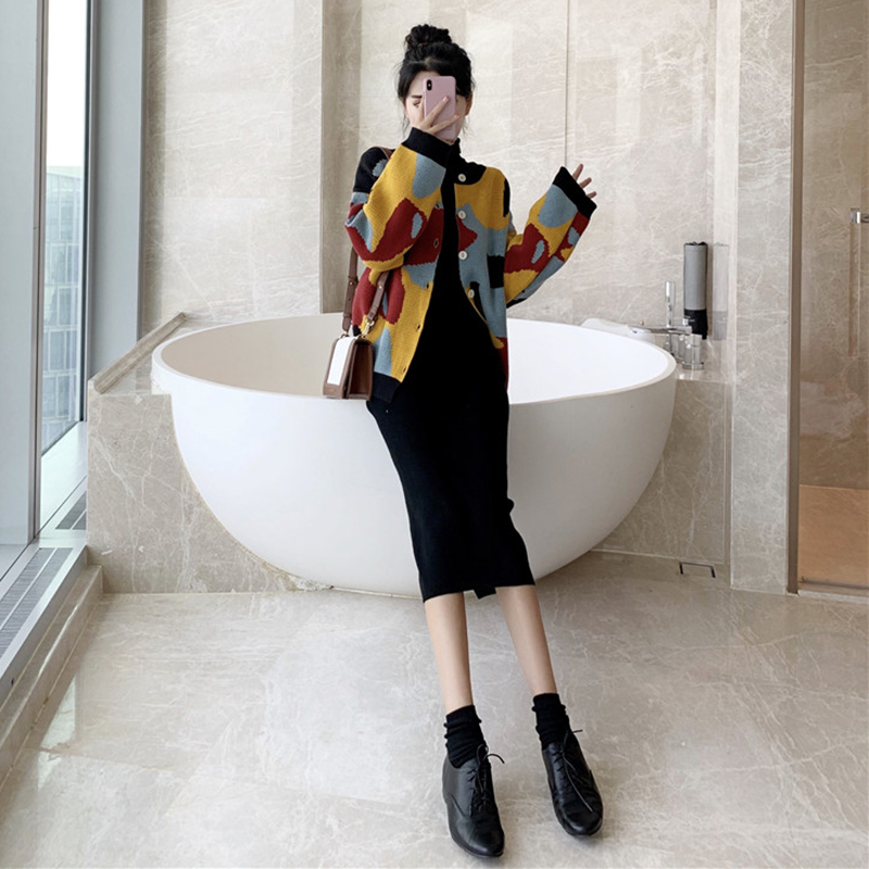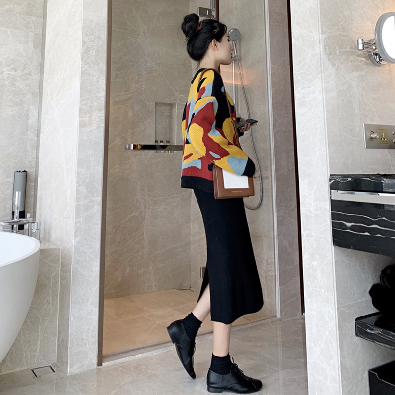 / 時尚套裝女秋冬新款正反兩面穿撞色毛衣外套高腰修身包臀半身裙子
