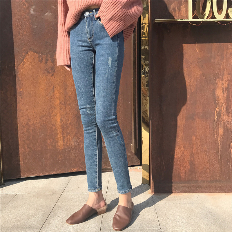 / 牛仔褲秋冬女2018新款顯瘦加厚保暖緊身小腳鉛筆褲修身高腰長褲子