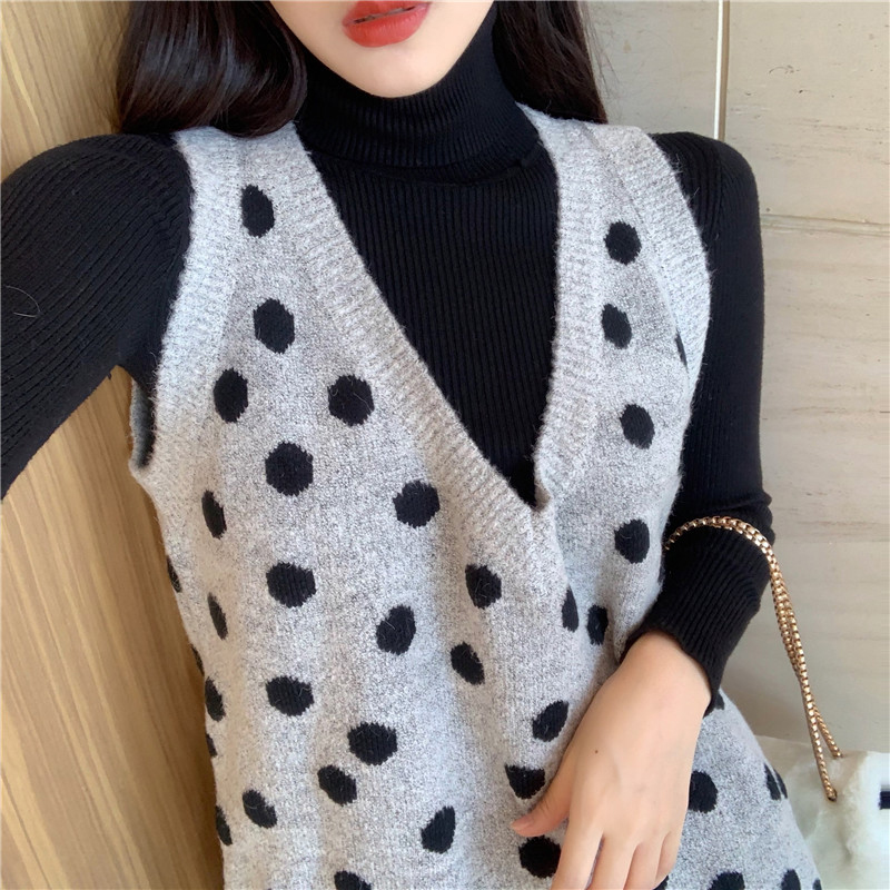 / 秋冬2018新款慵懶風毛衣背心裙子加修身高領針織打底衫兩件套裝女