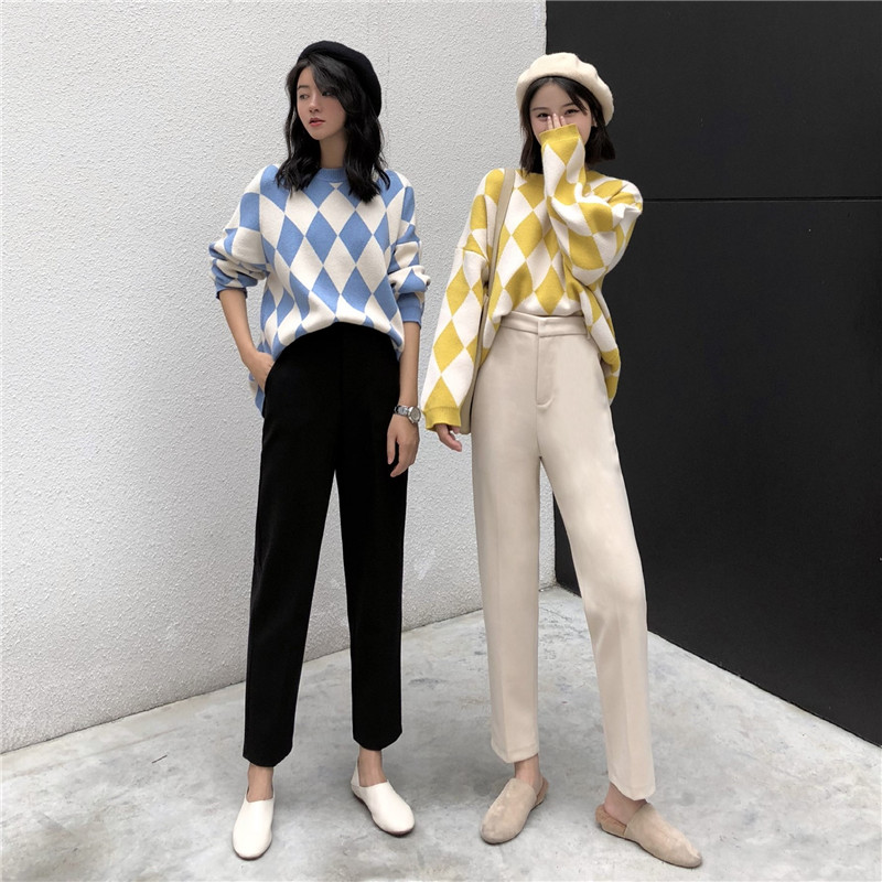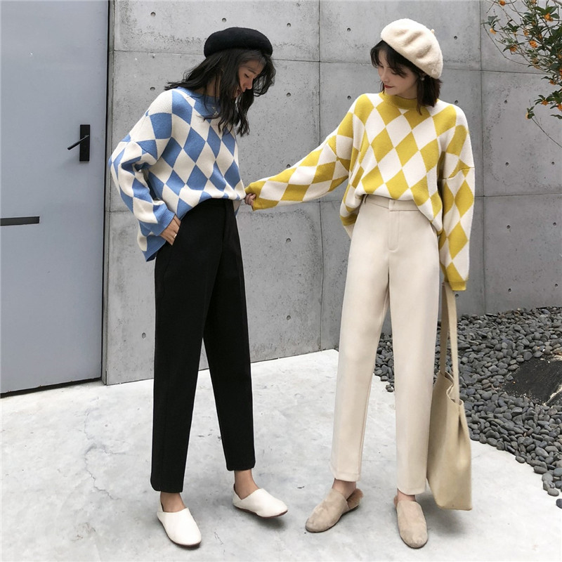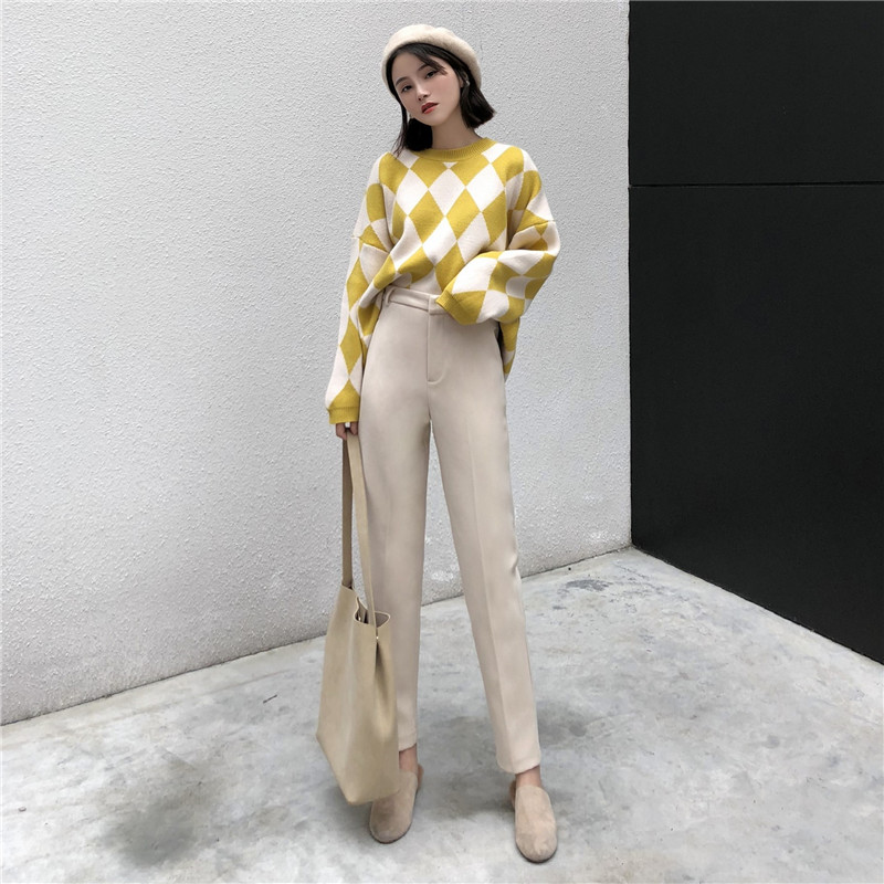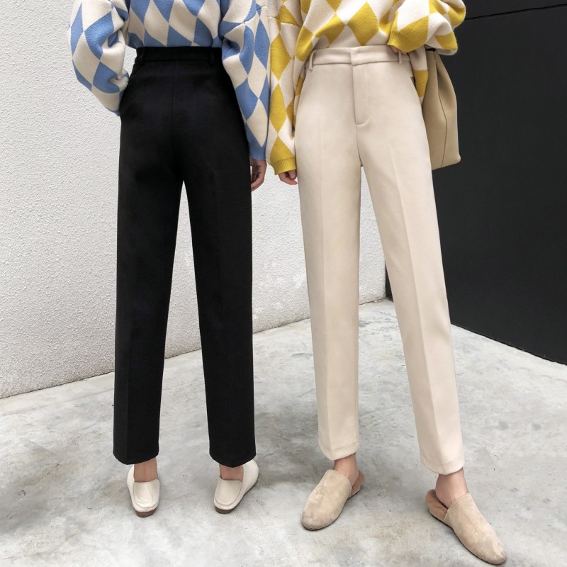 / 毛呢九分褲子女秋冬裝2018新款韓版高腰顯瘦西裝褲寬松休閑直筒褲