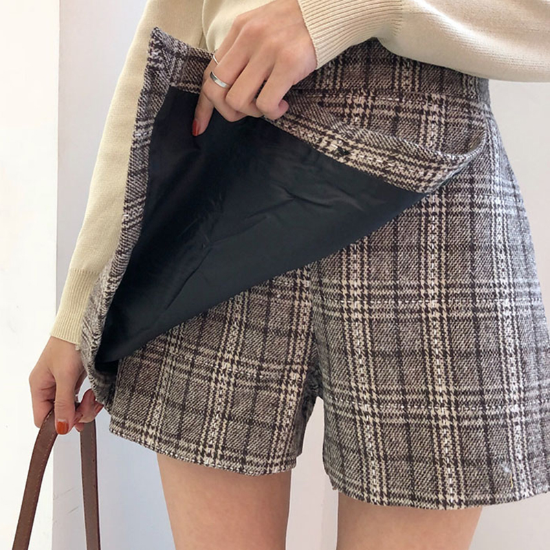 / 秋裝女2018新款韓版高腰顯瘦不規則格紋半身裙褲子學生復古短褲裙