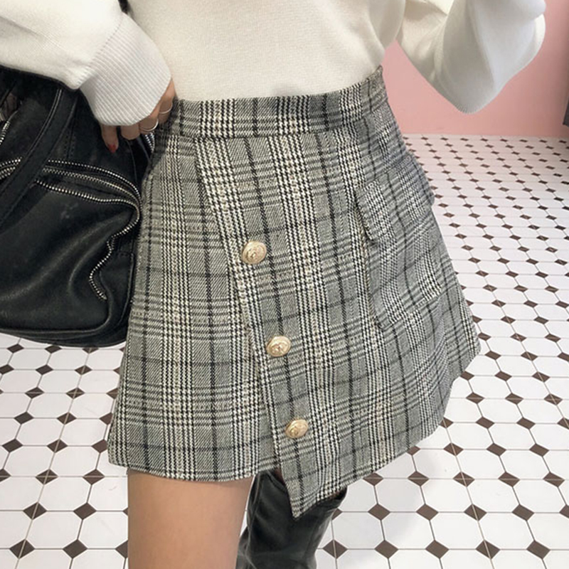 秋裝女2018新款韓版高腰顯瘦不規則格紋半身裙褲子學生復古短褲裙
