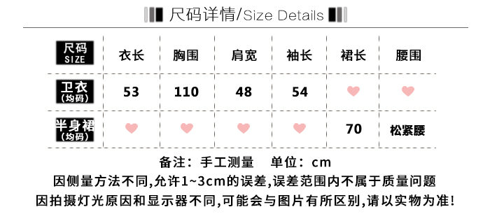 杏色假兩件衛衣|淺藍假兩件衛衣|藍色半裙|杏色半裙