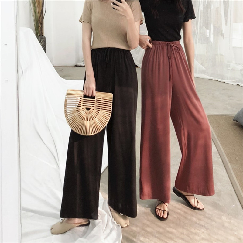/ 春裝新款女裝韓版寬松高腰休閑褲氣質純色闊腿褲直筒褲顯瘦長褲子