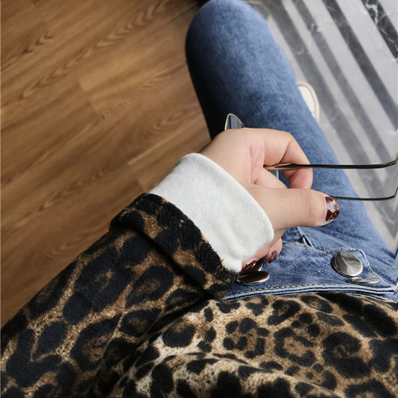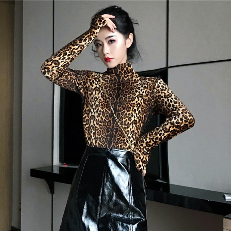 / 時尚豹紋高領T恤秋裝女2018新款韓版修身顯瘦打底衫氣質長袖上衣