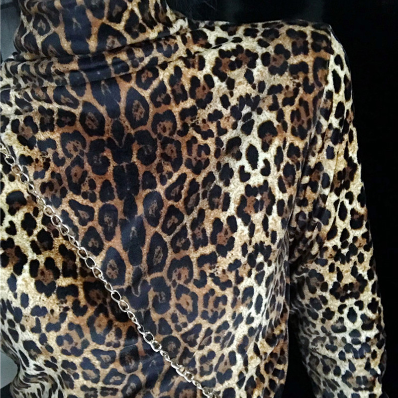 時尚豹紋高領T恤秋裝女2018新款韓版修身顯瘦打底衫氣質長袖上衣