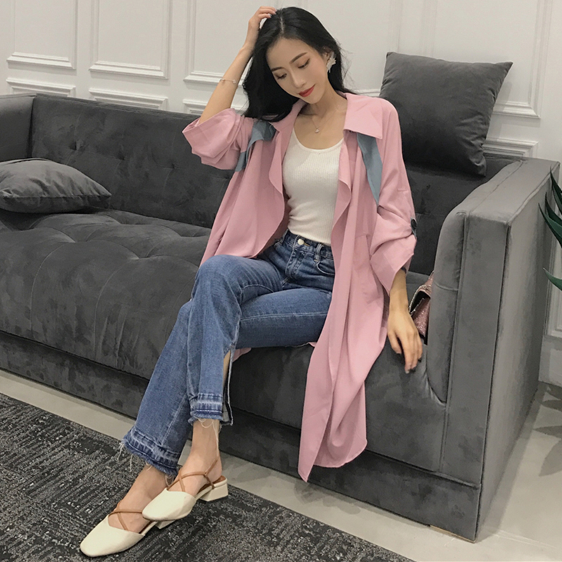 寬松長袖風衣女中長款秋冬裝新款韓版chic學生時尚外套拼色大衣潮