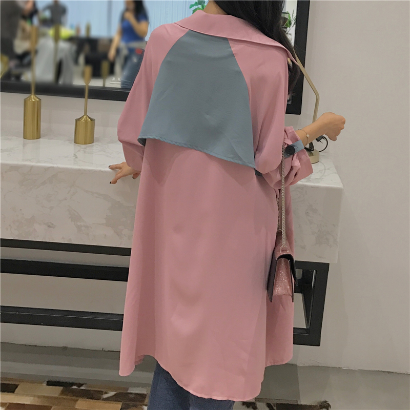 / 寬松長袖風衣女中長款秋冬裝新款韓版chic學生時尚外套拼色大衣潮