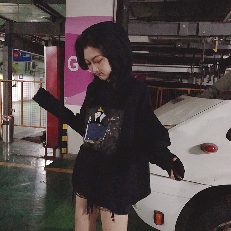 秋裝女2018新款復古時尚白雪公主印花oversize連帽衛衣女寬松上衣