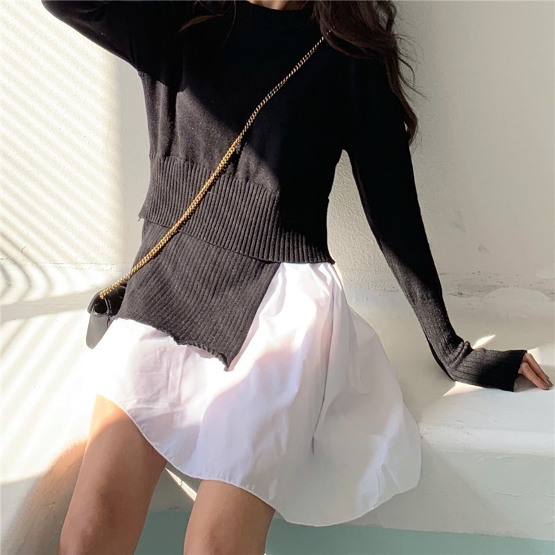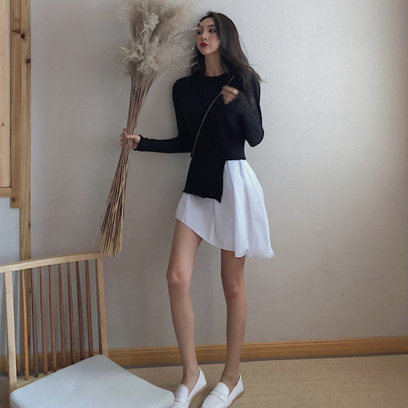 秋冬女裝2018新款時尚撞色拼接氣質A字egg連衣裙復古法式茶歇裙子