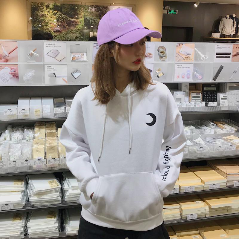 / 時尚刺繡加絨連帽衛衣2018新款女秋冬裝港風學生外套寬松長袖上衣