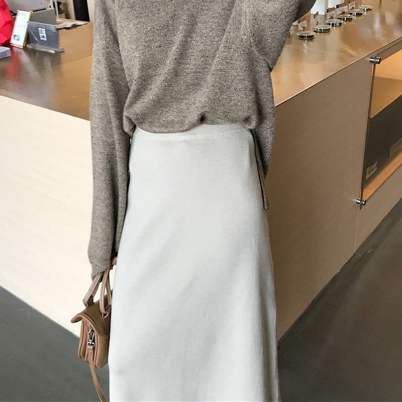 復古黑色中長針織裙秋裝女2018新款韓版高腰顯瘦A字裙氣質半身裙