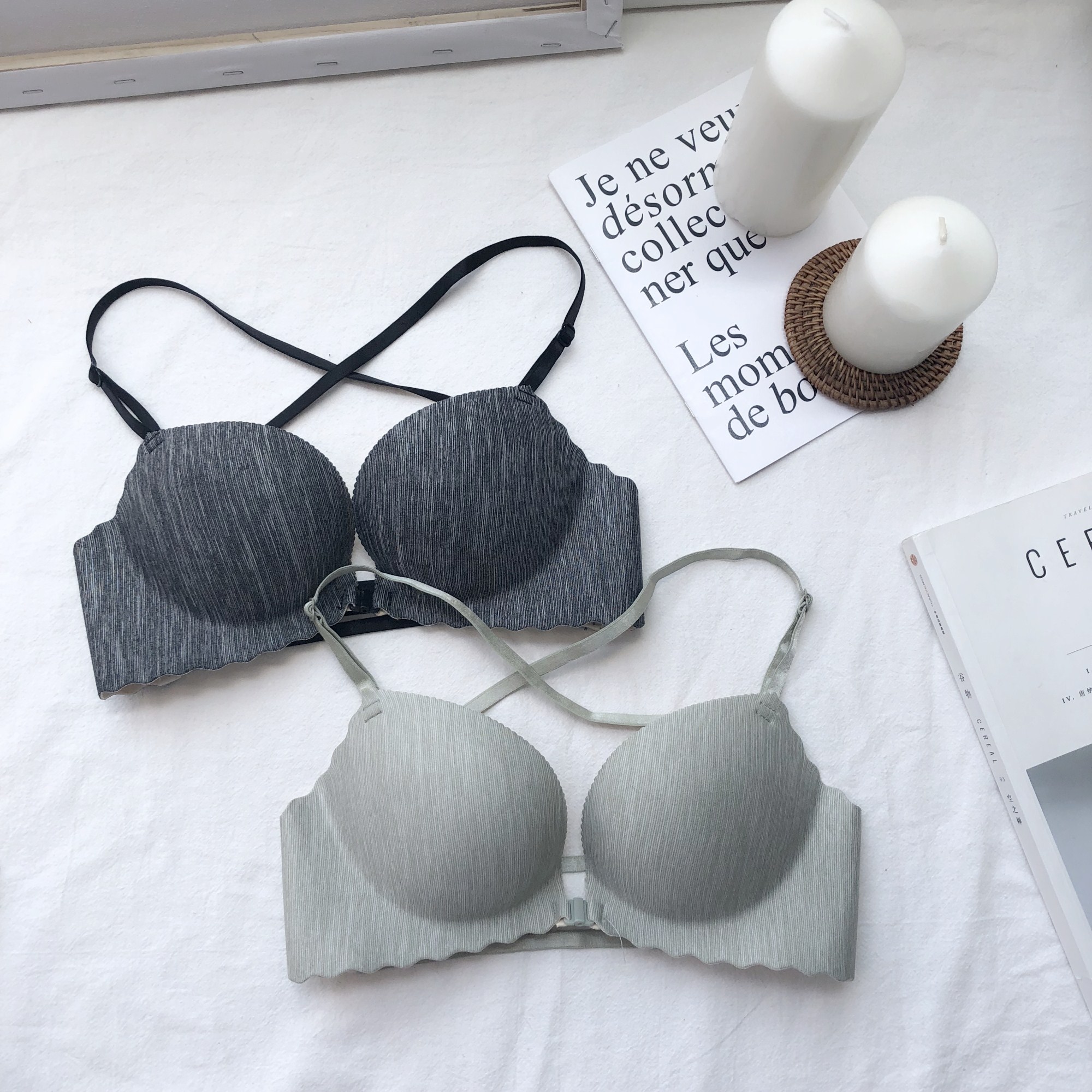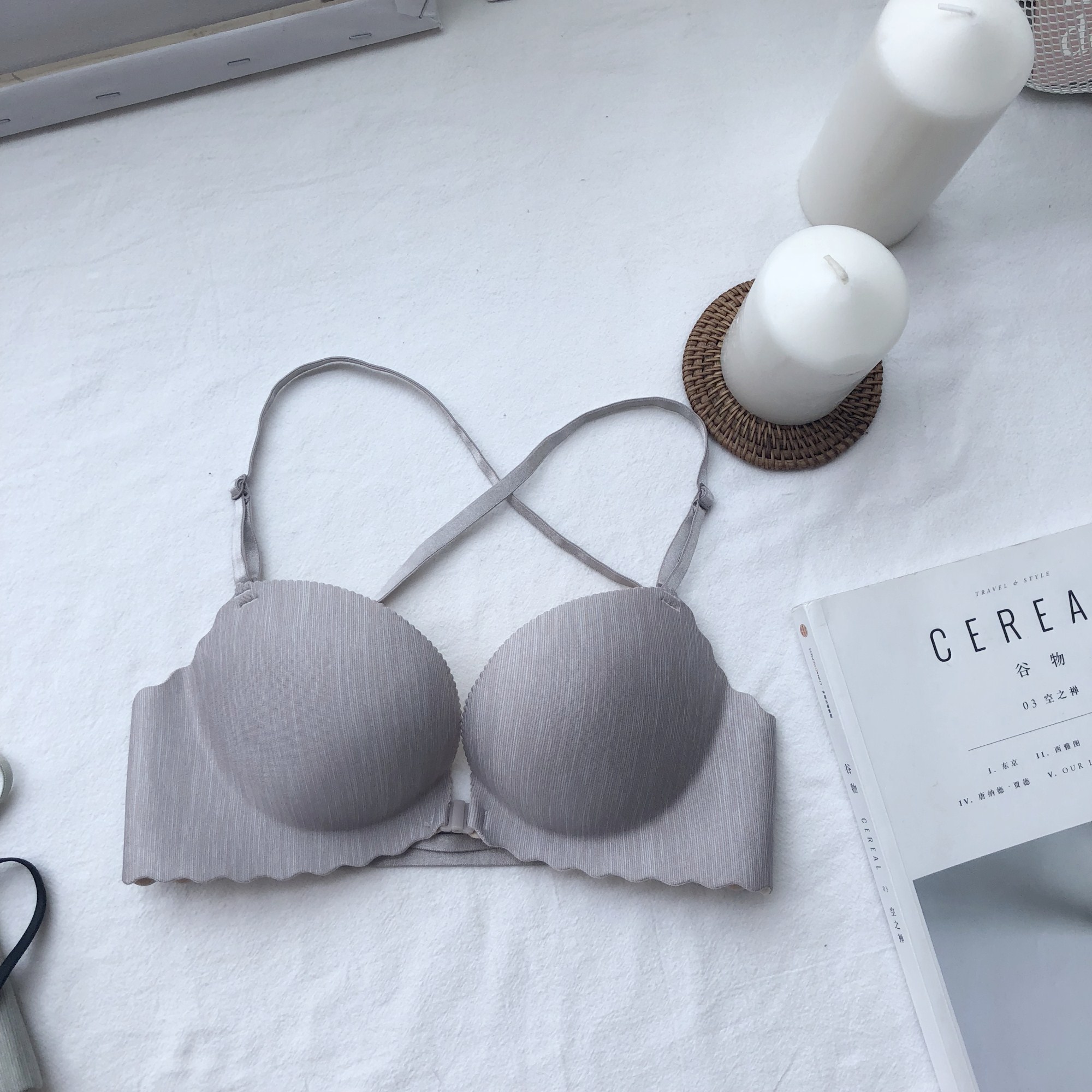 秋裝女2018新款前扣美背內衣上托無鋼圈少女性感無痕交叉聚攏文胸