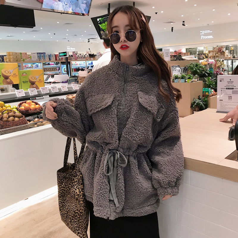 / 秋冬女裝2018新款學生羊羔毛棉襖外套韓版寬松長袖系帶收腰棉衣服