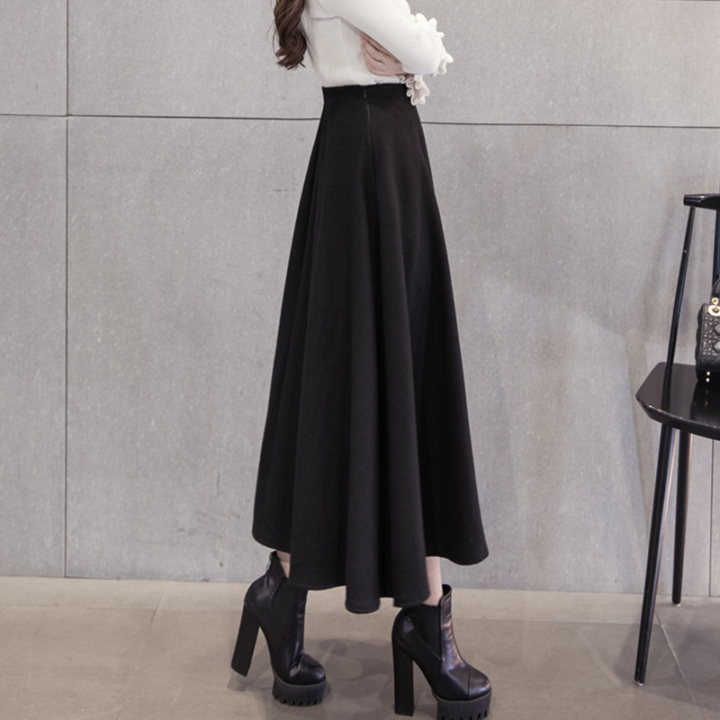 / 女裝秋冬毛呢長裙2018新款顯瘦高腰大擺a字裙女氣質黑色半身裙子
