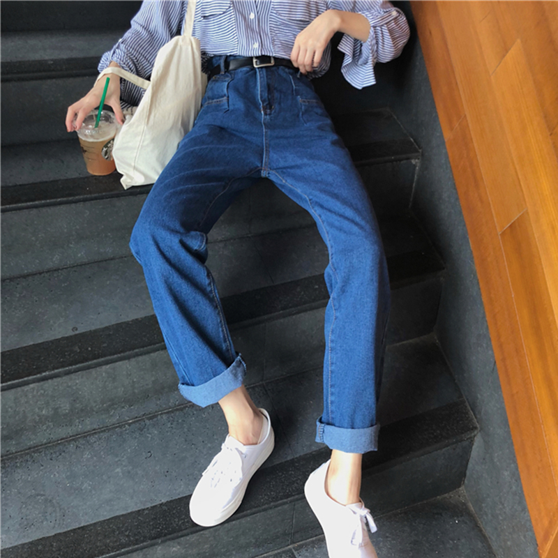 / 復古寬松顯瘦直筒褲女學生秋裝藍色牛仔褲子港味高腰2018新款長褲