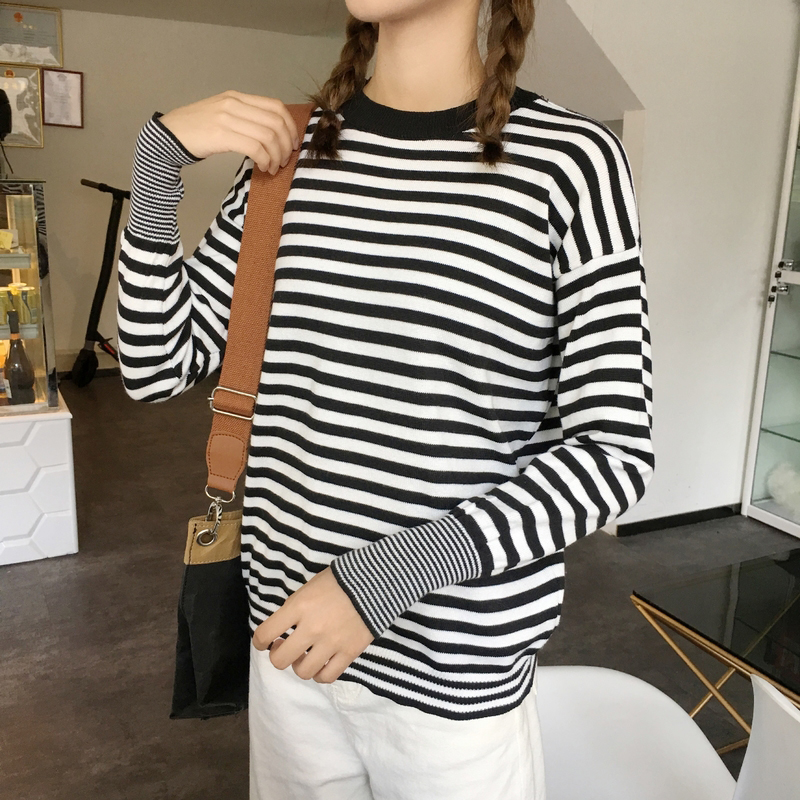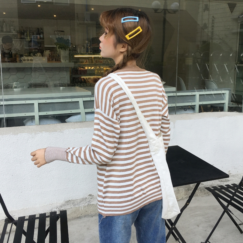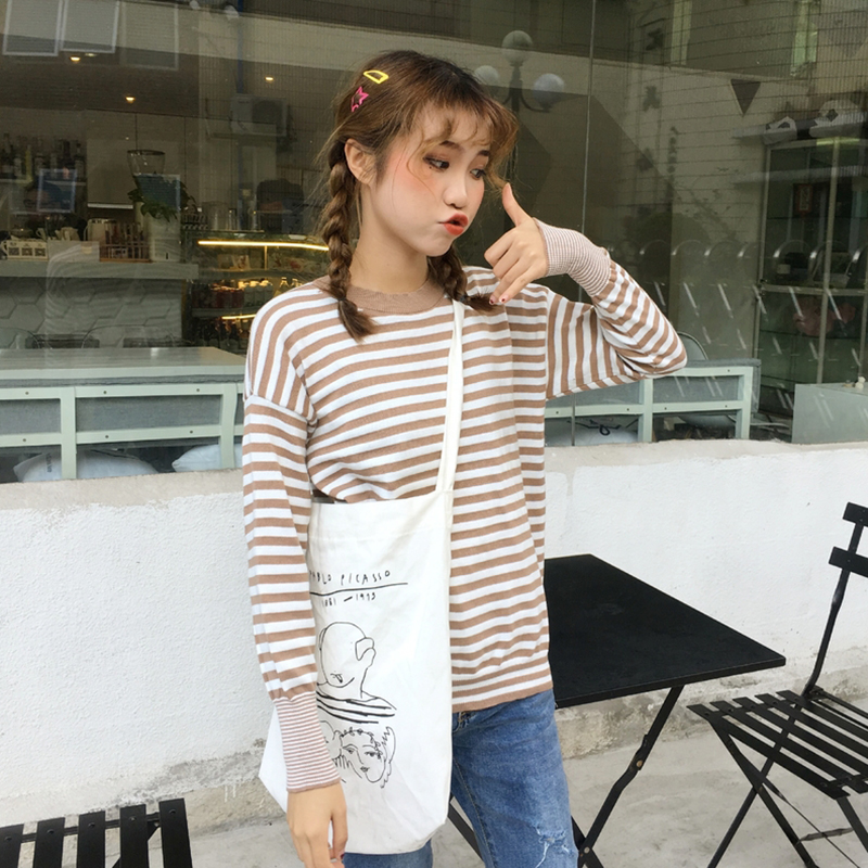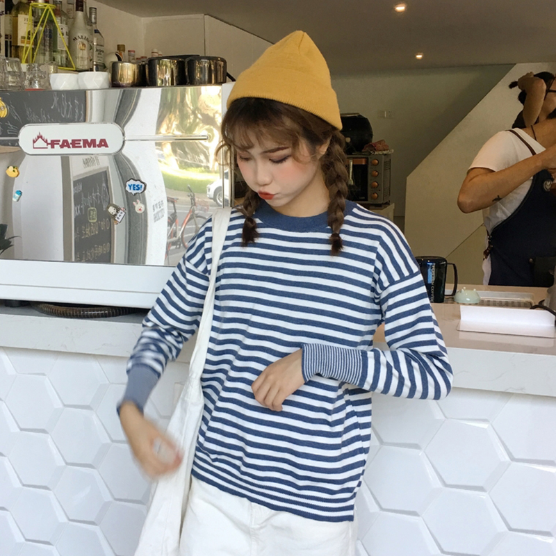 秋冬女裝2018新款韓版百搭條紋長袖針織衫學生寬松外穿打底薄毛衣