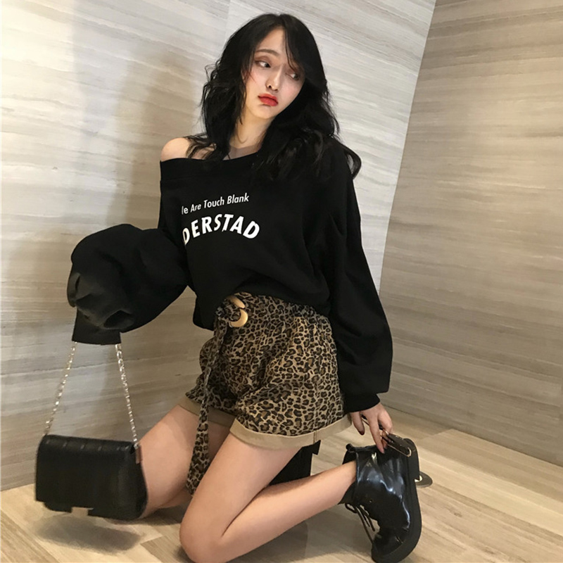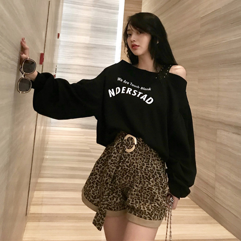 個性柳釘露肩衛衣秋裝女2018新款韓版寬松慵懶風字母長袖上衣外套