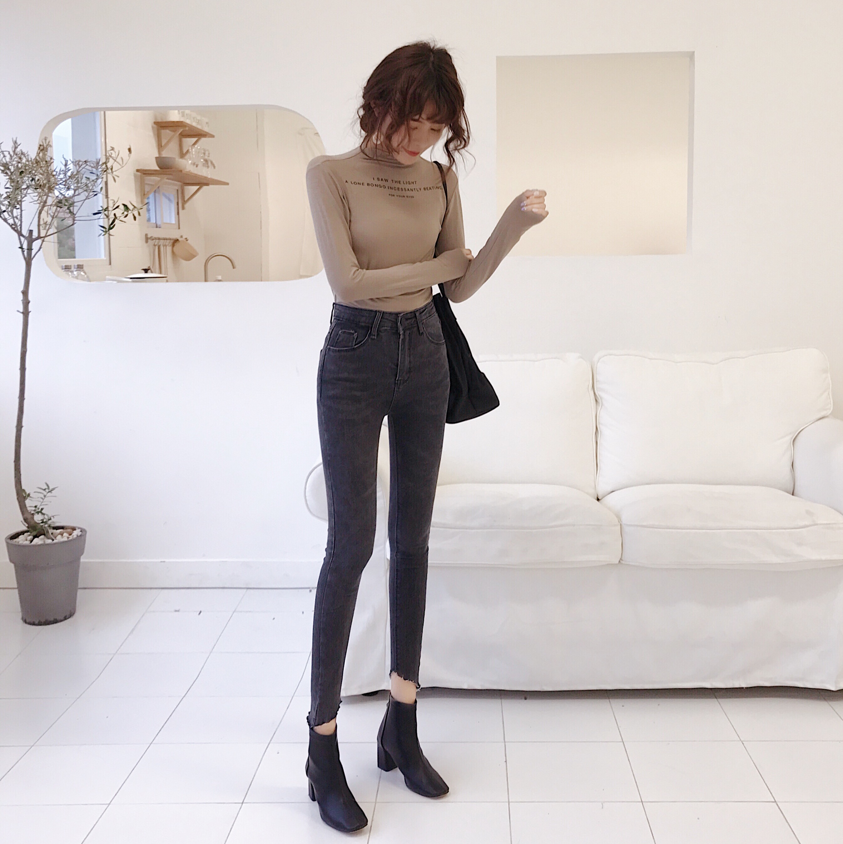 時尚秋裝女2018新款韓國高腰彈力牛仔褲百搭顯瘦九分褲小腳鉛筆褲