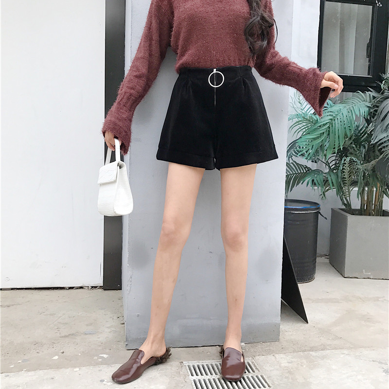 / 復古風闊腿短褲女秋冬裝2018新款韓版chic高腰顯瘦絲絨休閑靴褲子