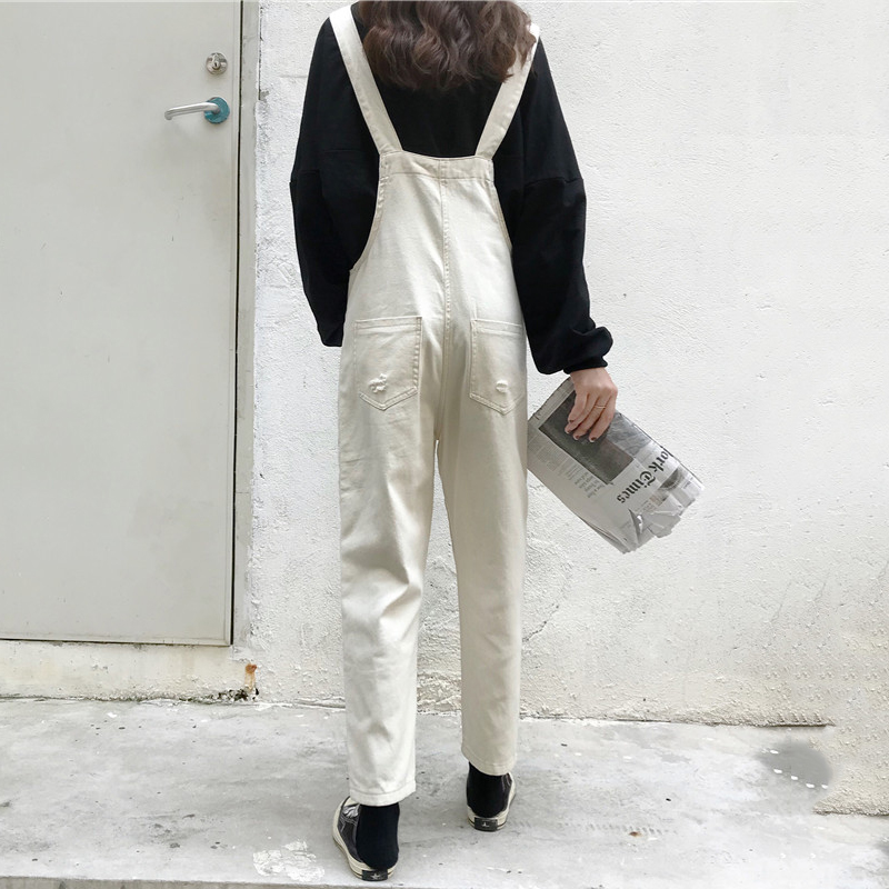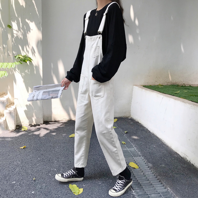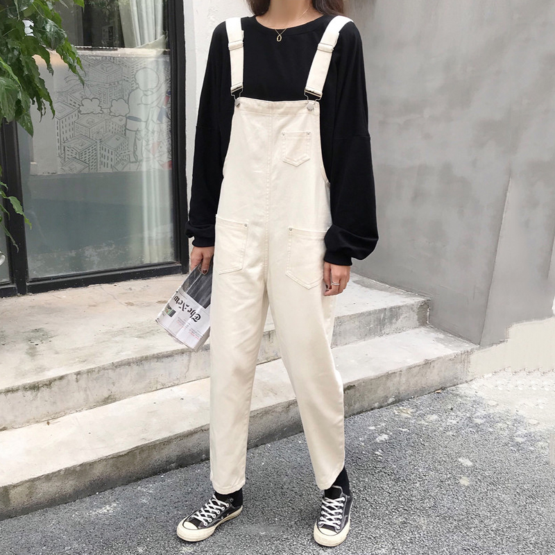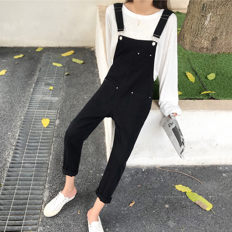 / 黑色背帶褲秋裝女2018新款直筒復古風休閑牛仔褲寬松吊帶連體褲子