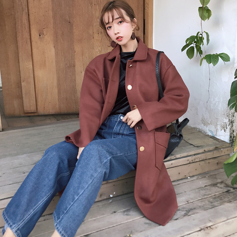 2018流行毛呢外套女秋冬裝新款赫本大衣小個子學生寬松長袖風衣潮