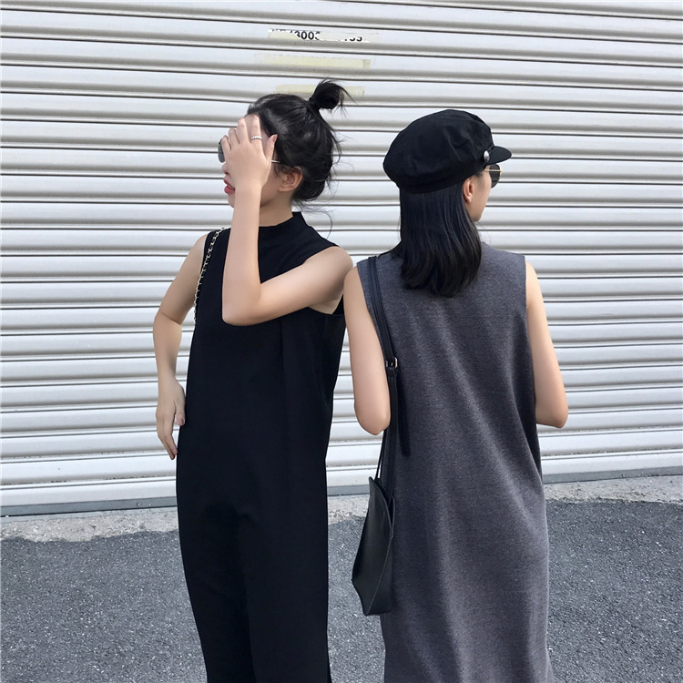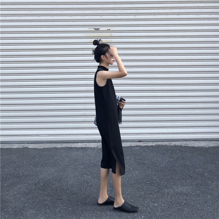 chic早秋裙子長裙女慵懶風時尚韓版打底裙氣質小立領背心連衣裙潮