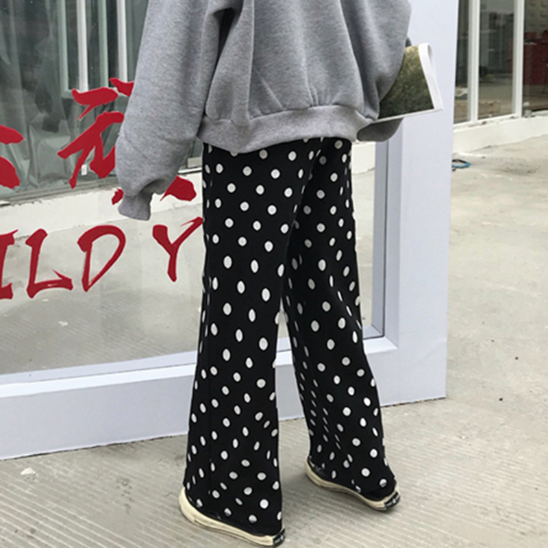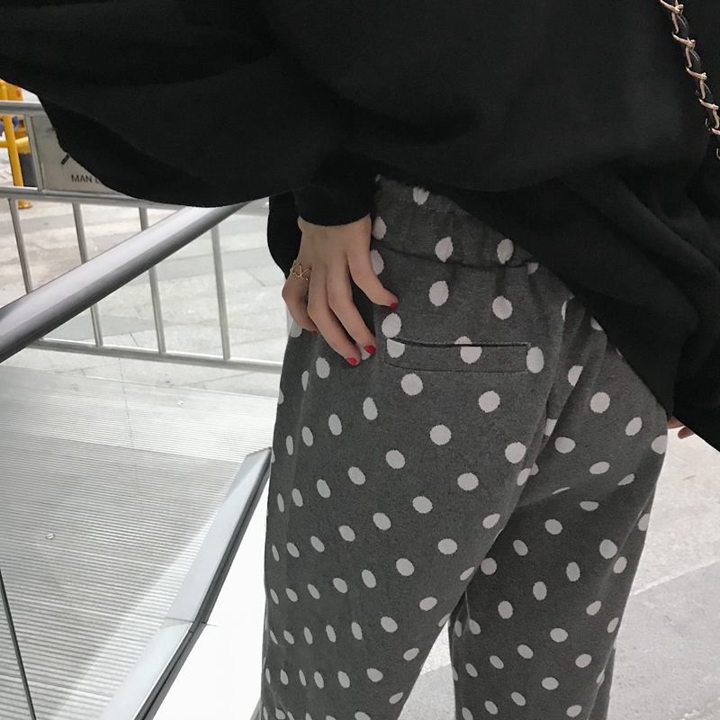 / 褲子女秋冬2018新款女裝韓版寬松針織闊腿褲學生復古波點直筒長褲