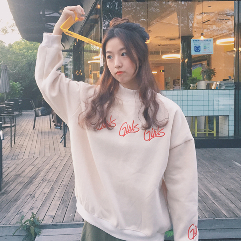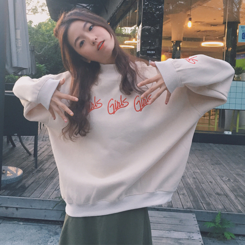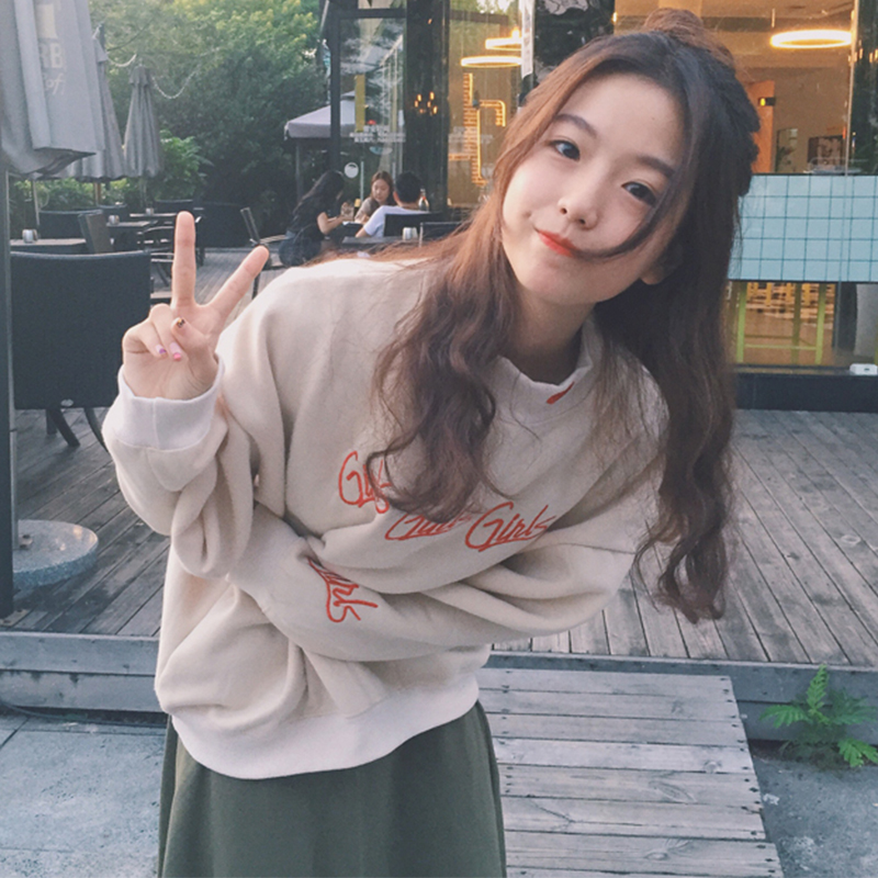 秋冬女裝新款韓版寬松加絨套頭衛衣學生上衣少女刺繡愛心長袖外套