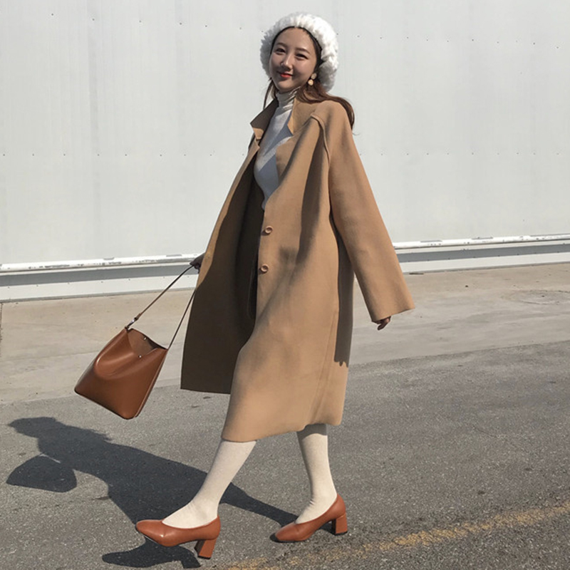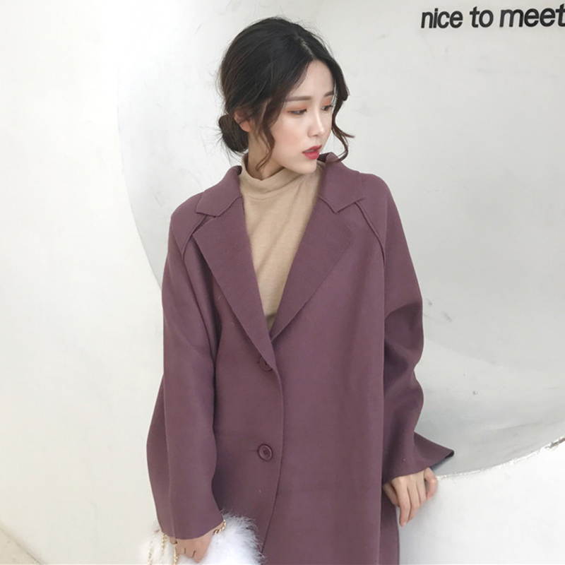 chic流行呢子長袖大衣女冬裝2018新款韓版寬松翻領中長款毛呢外套