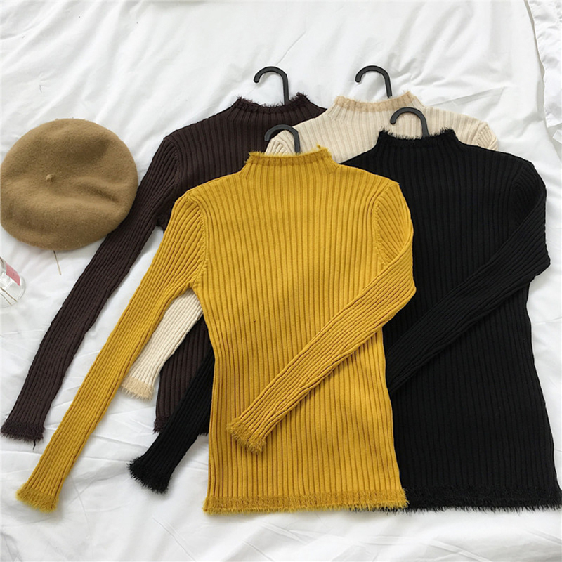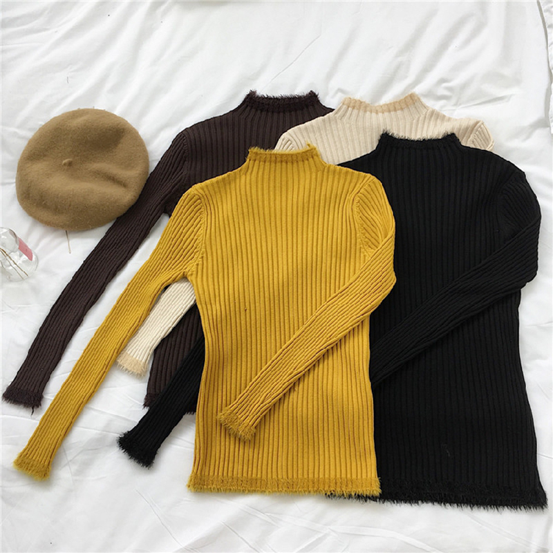 氣質小高領修身顯瘦毛衣女秋冬裝2018新款學生黑色長袖打底針織衫