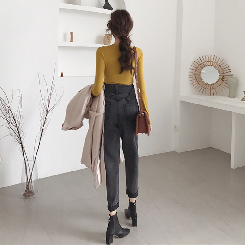 怪味少女高腰顯瘦牛仔褲秋冬裝新款學生復古休閑寬松哈倫老爹褲子