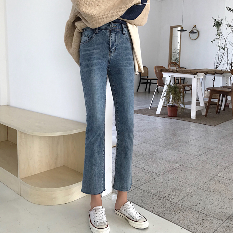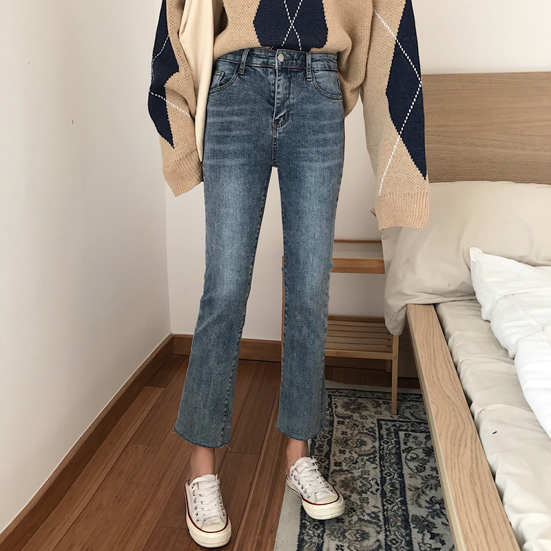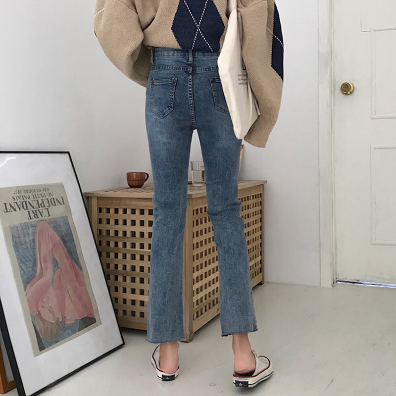 / 怪味少女高腰顯瘦九分牛仔褲秋冬裝新款韓版復古初戀休閑微喇褲子