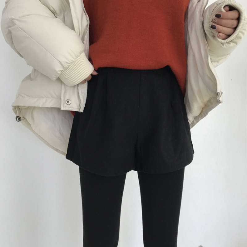 / 學生休閑毛呢短褲女秋冬裝2018新款韓版百搭高腰寬松顯闊腿靴褲子