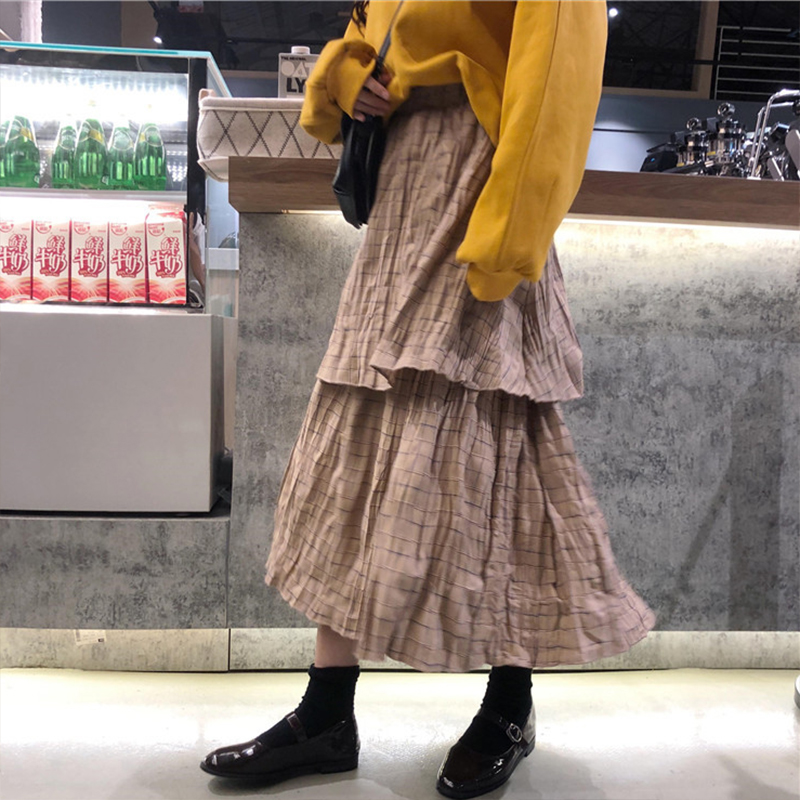 / 套裝女秋冬2018新款半高領衛衣慵懶風黑色外套高腰格子A字半身裙