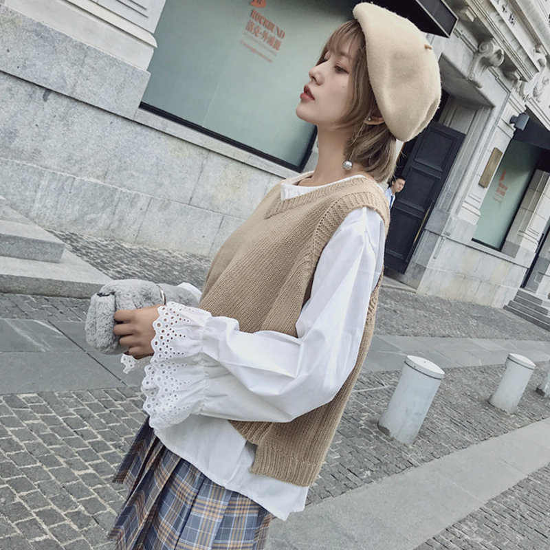 / 秋季新款女裝寬松顯瘦百搭套頭短款無袖外穿針織毛衣背心坎肩馬甲