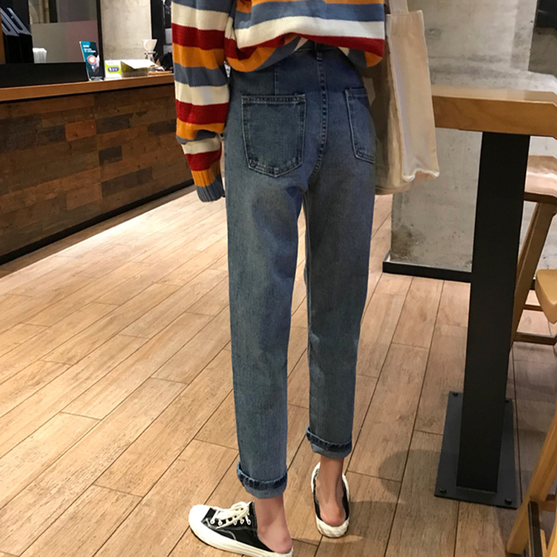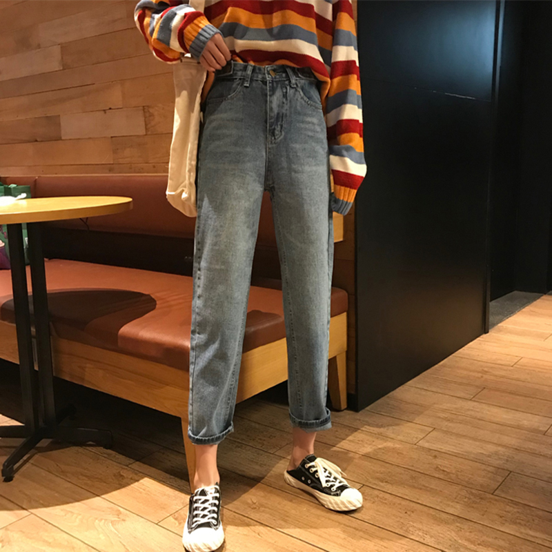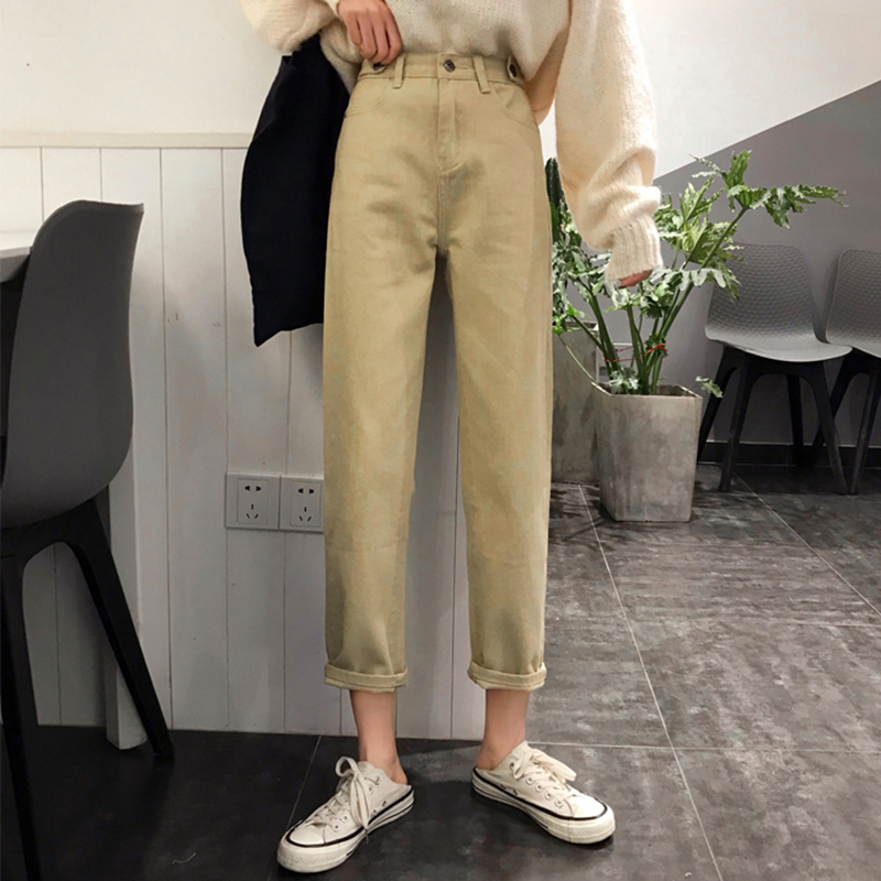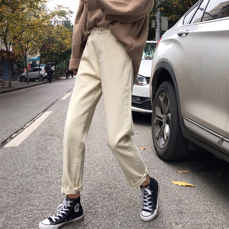 / 怪味少女高腰顯瘦黑色牛仔褲秋冬裝新款寬松直筒休閑初戀九分褲子