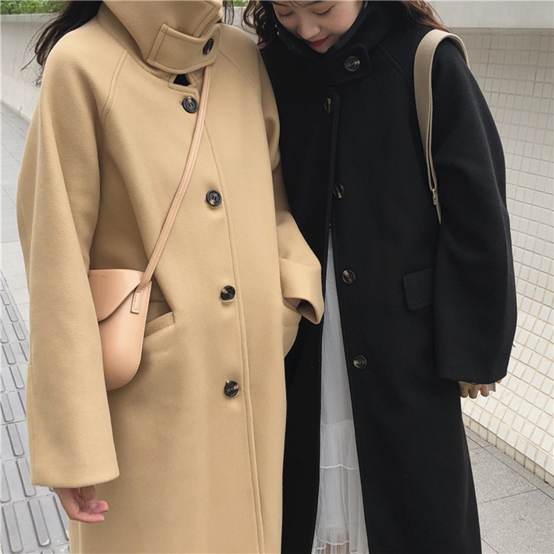 / 2018流行長袖毛呢外套女秋冬裝新款赫本大衣加厚長款黑色開衫上衣
