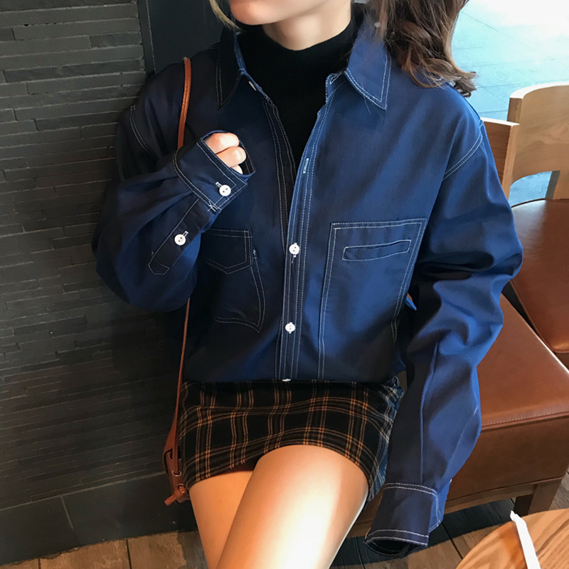 / 秋冬女裝2018新款時尚寬松長袖牛仔襯衫學生加絨保暖外套休閑上衣