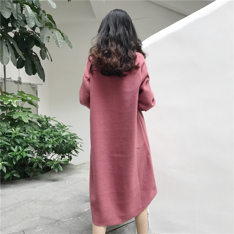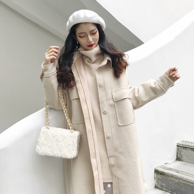 秋冬裝女新款2018流行寬松毛呢外套女韓版口袋中長款過膝呢子大衣