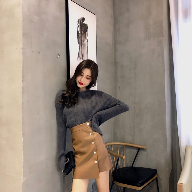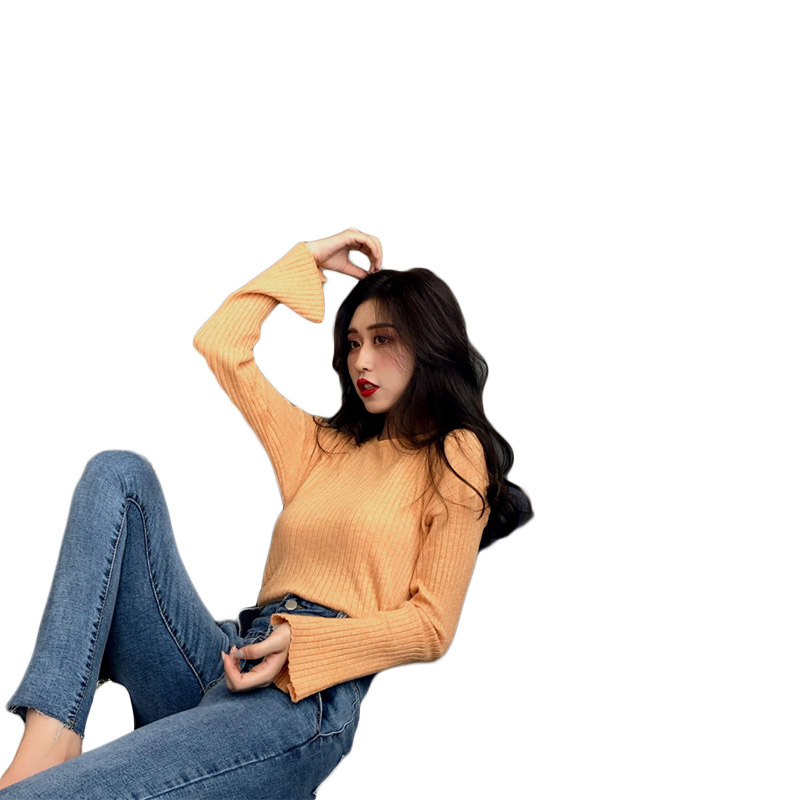/ 復古時尚純色百搭修身坑條長袖打底針織衫女學生韓版chic早秋上衣