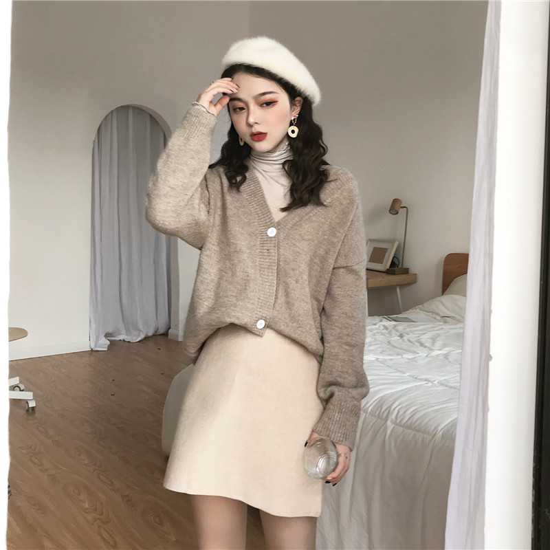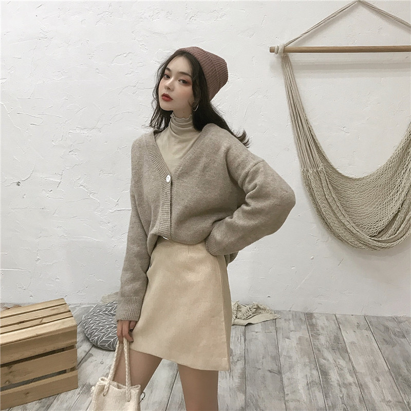 高領打底很百搭啊 顏色跟外面的針織開衫差不多的色系 看上去很舒服