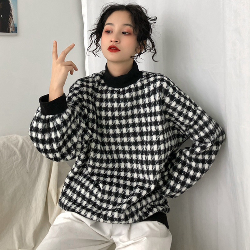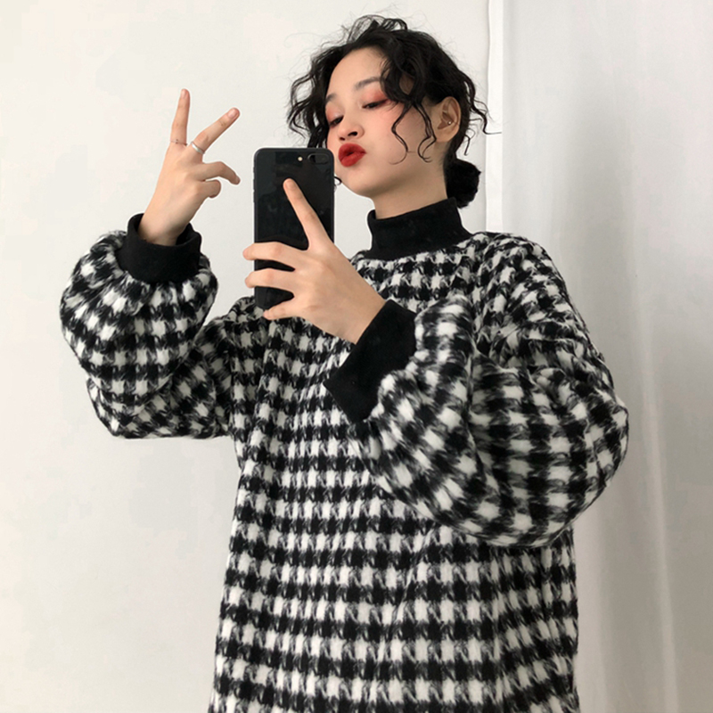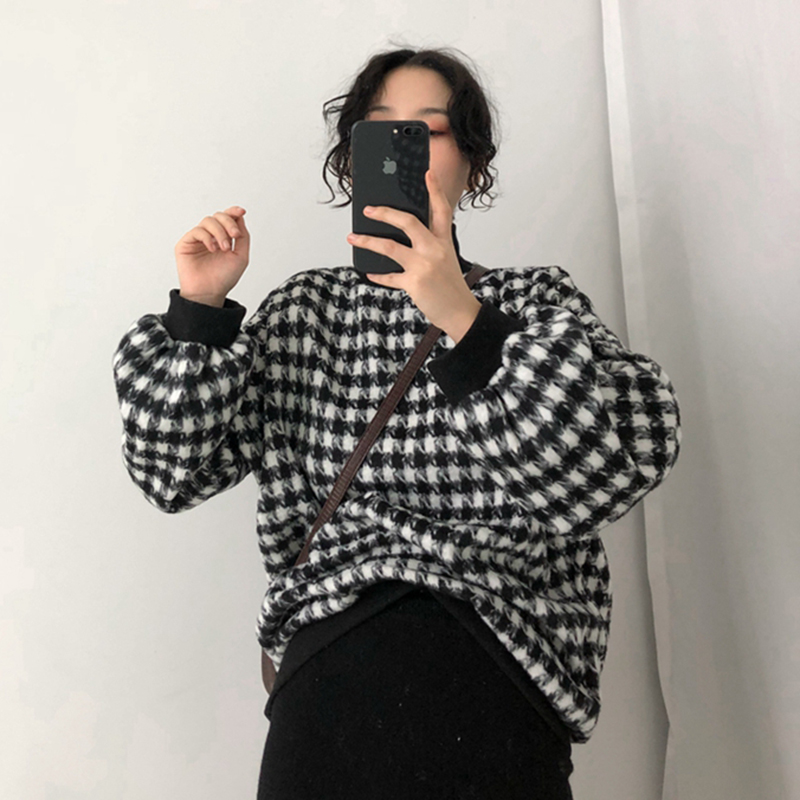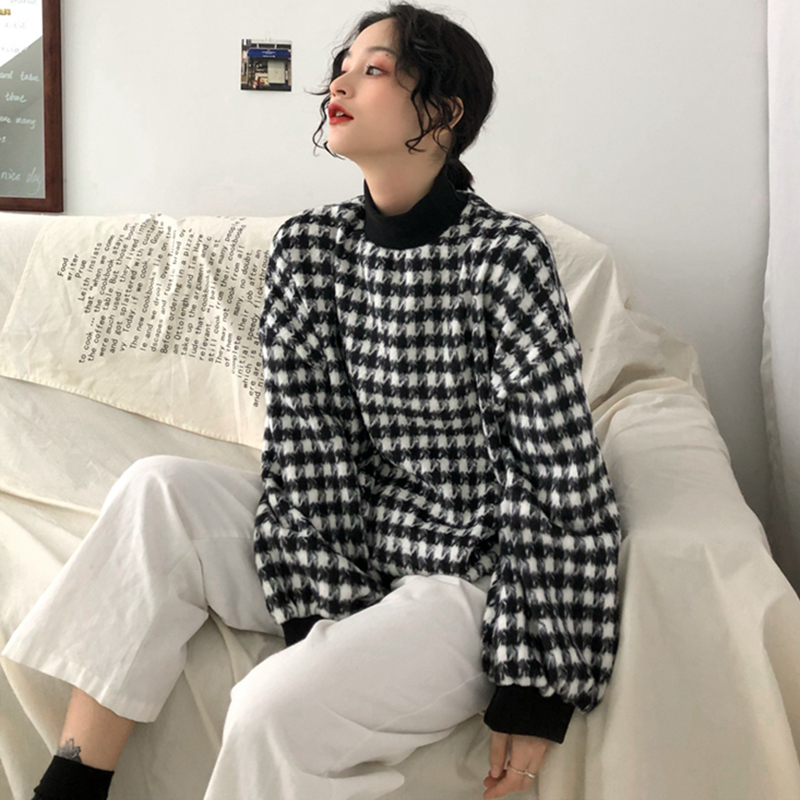 / 怪味千鳥格子衛衣2018新款女秋冬裝港風寬松外套顯瘦休閑長袖上衣
