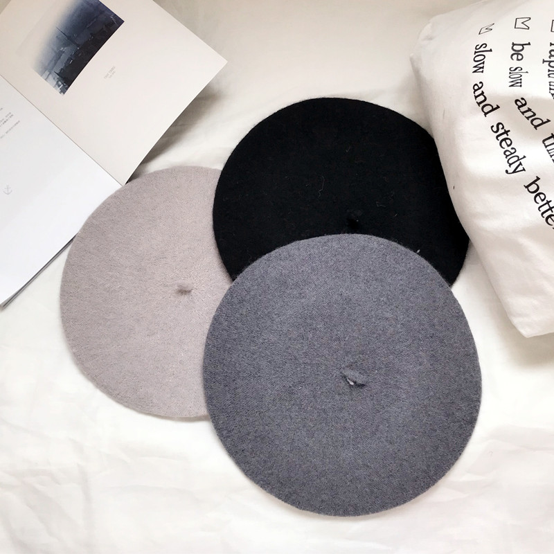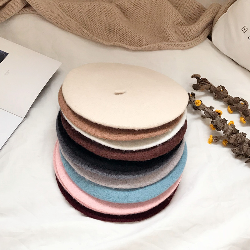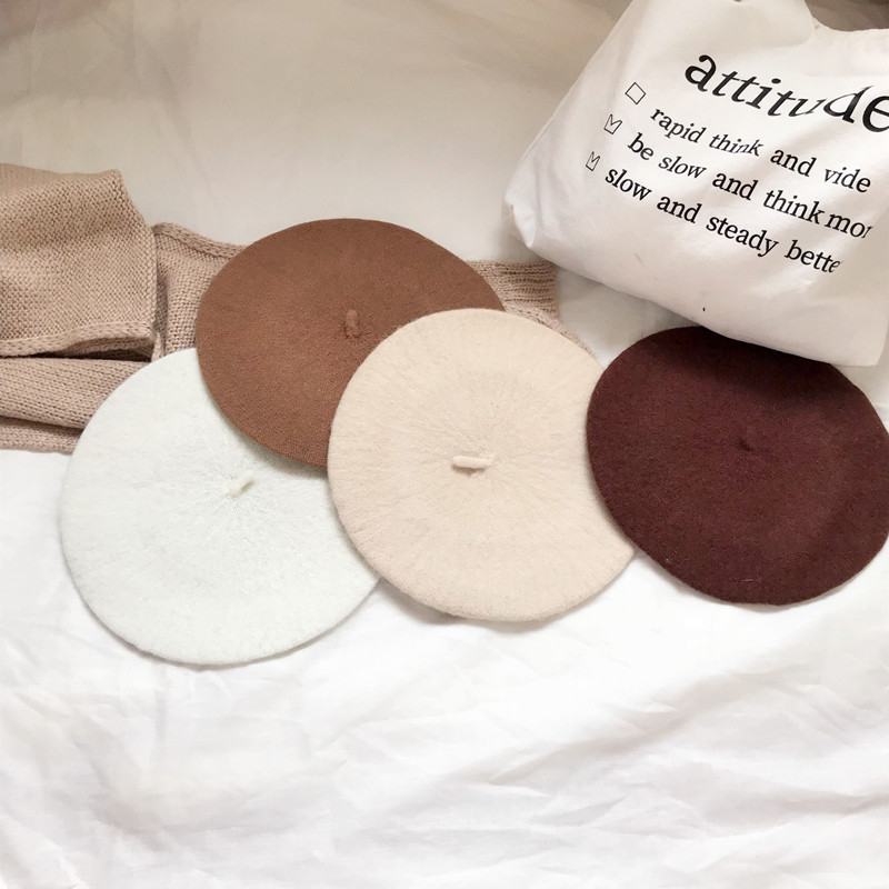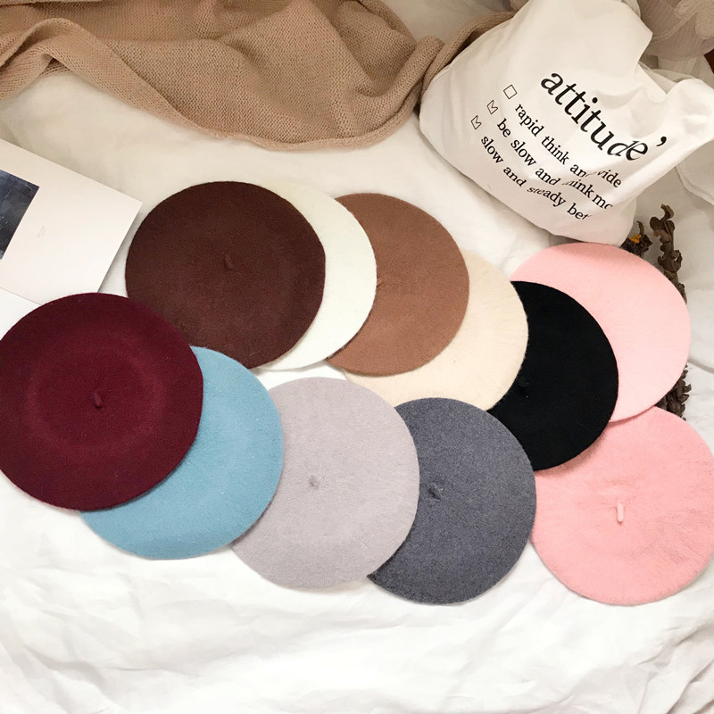 秋冬百搭款純色毛呢貝雷帽畫家帽子女時尚復古英倫蓓蕾帽燒餅帽潮