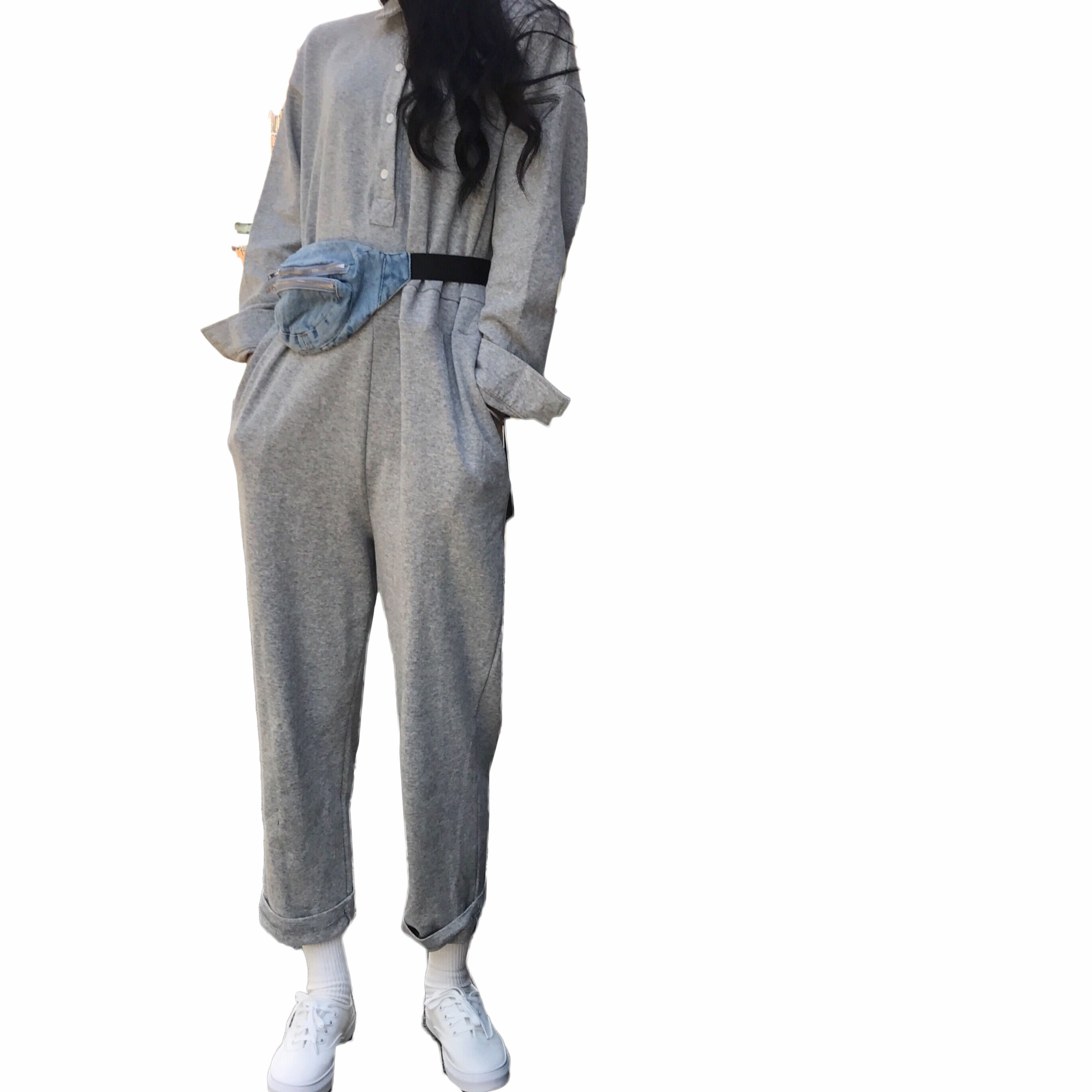 / 氣質polo領工裝顯瘦長袖衛衣料連體褲休閑褲女秋冬2018新款長褲潮