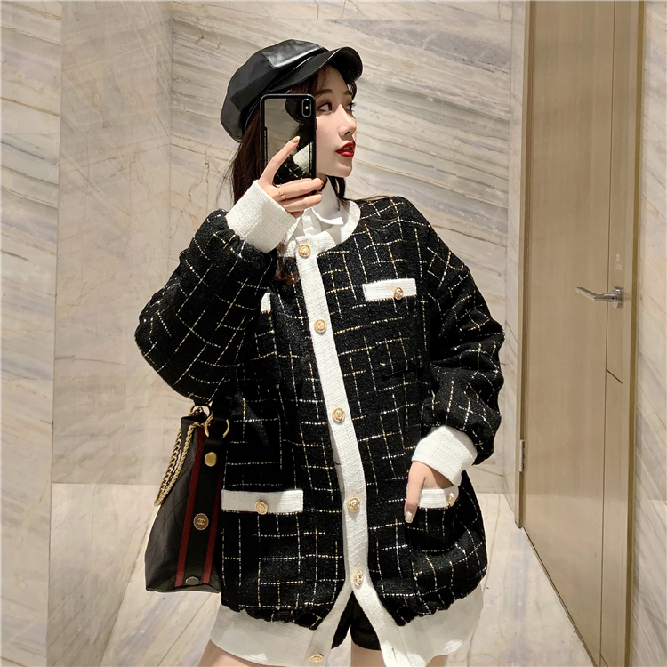 / 格子粗花呢棉服女2018新款冬韓版加厚保暖時尚夾棉外套名媛大衣潮