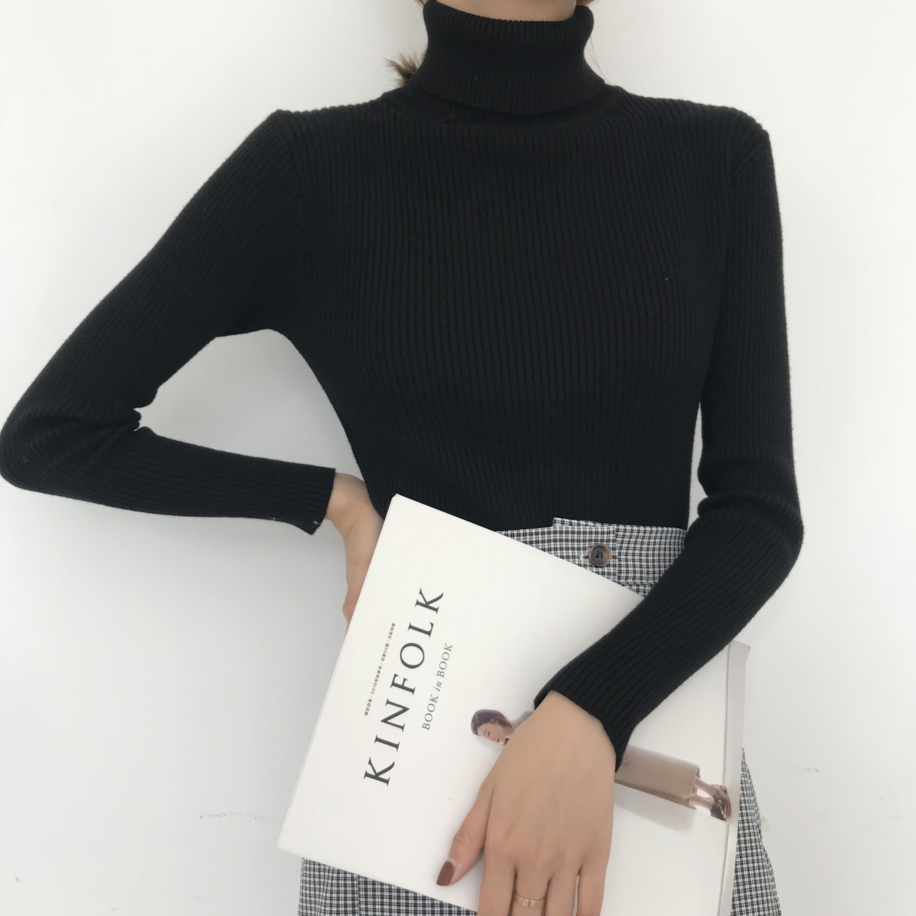 韓版chic早秋針織衫網紅毛衣女慵懶風高領百搭修身加厚針織打底衫