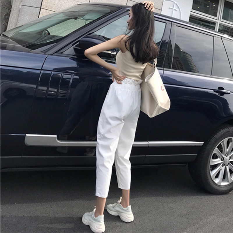 晚晚風復古套裝女夏2018新款女裝針織背心上衣+高腰花苞哈倫褲子