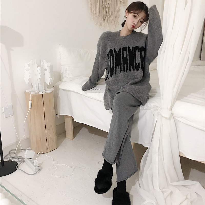 慵懶風中長款毛衣外套女秋冬裝2018新款韓版寬松字母套頭針織衫潮