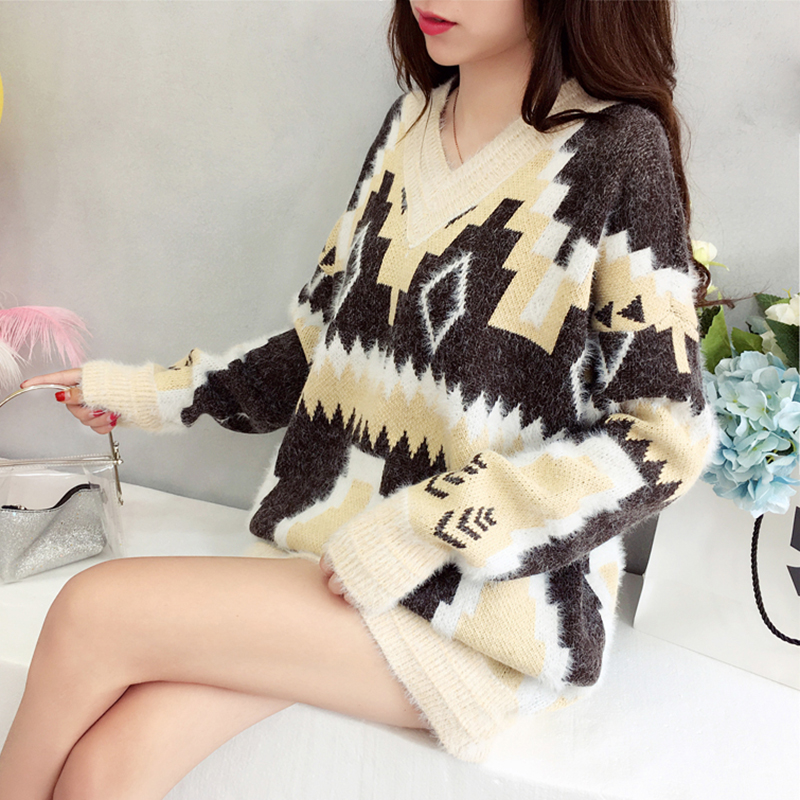 時尚中長款慵懶毛衣女秋冬裝2018新款韓版學生寬松針織外套上衣潮